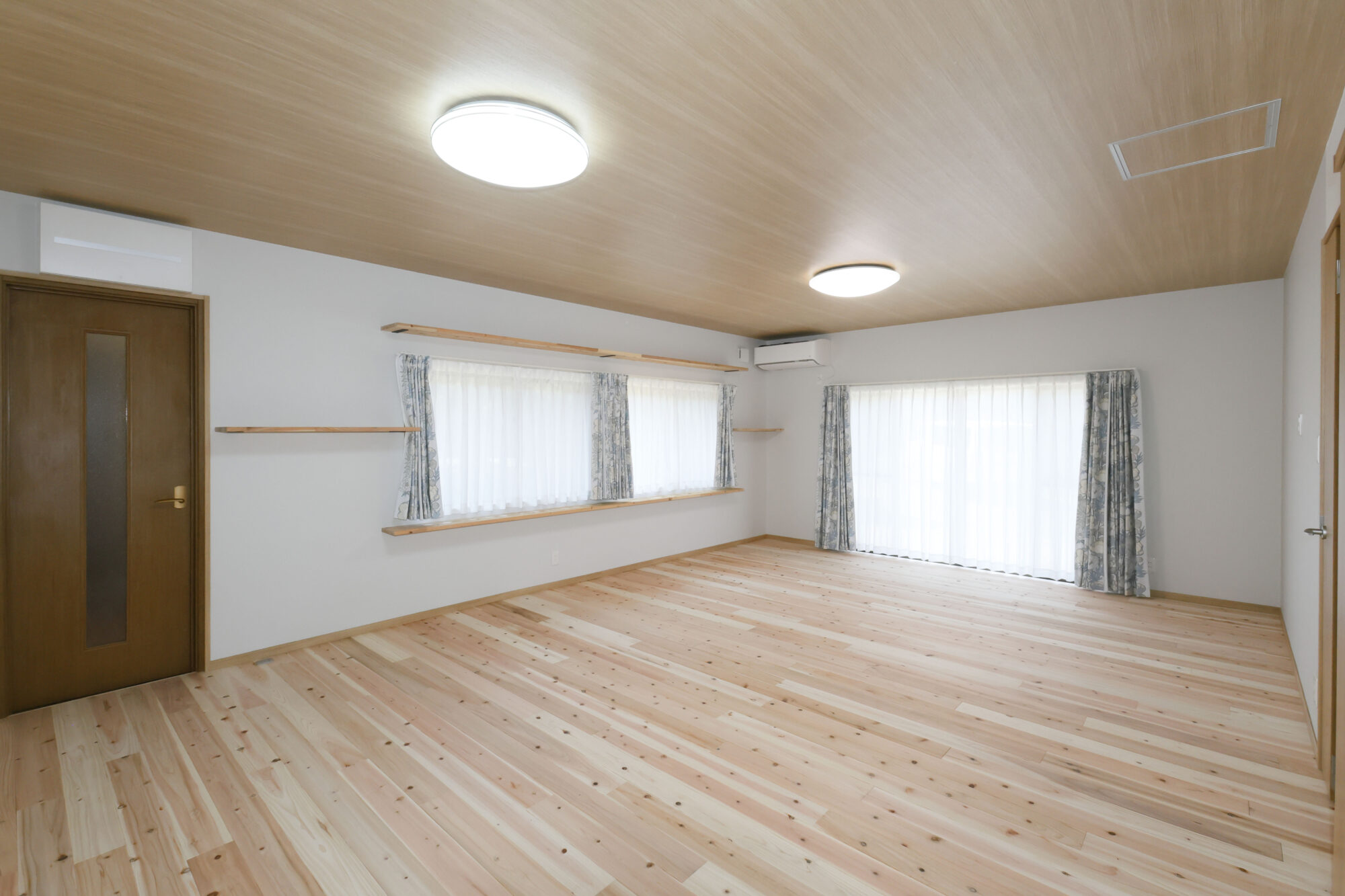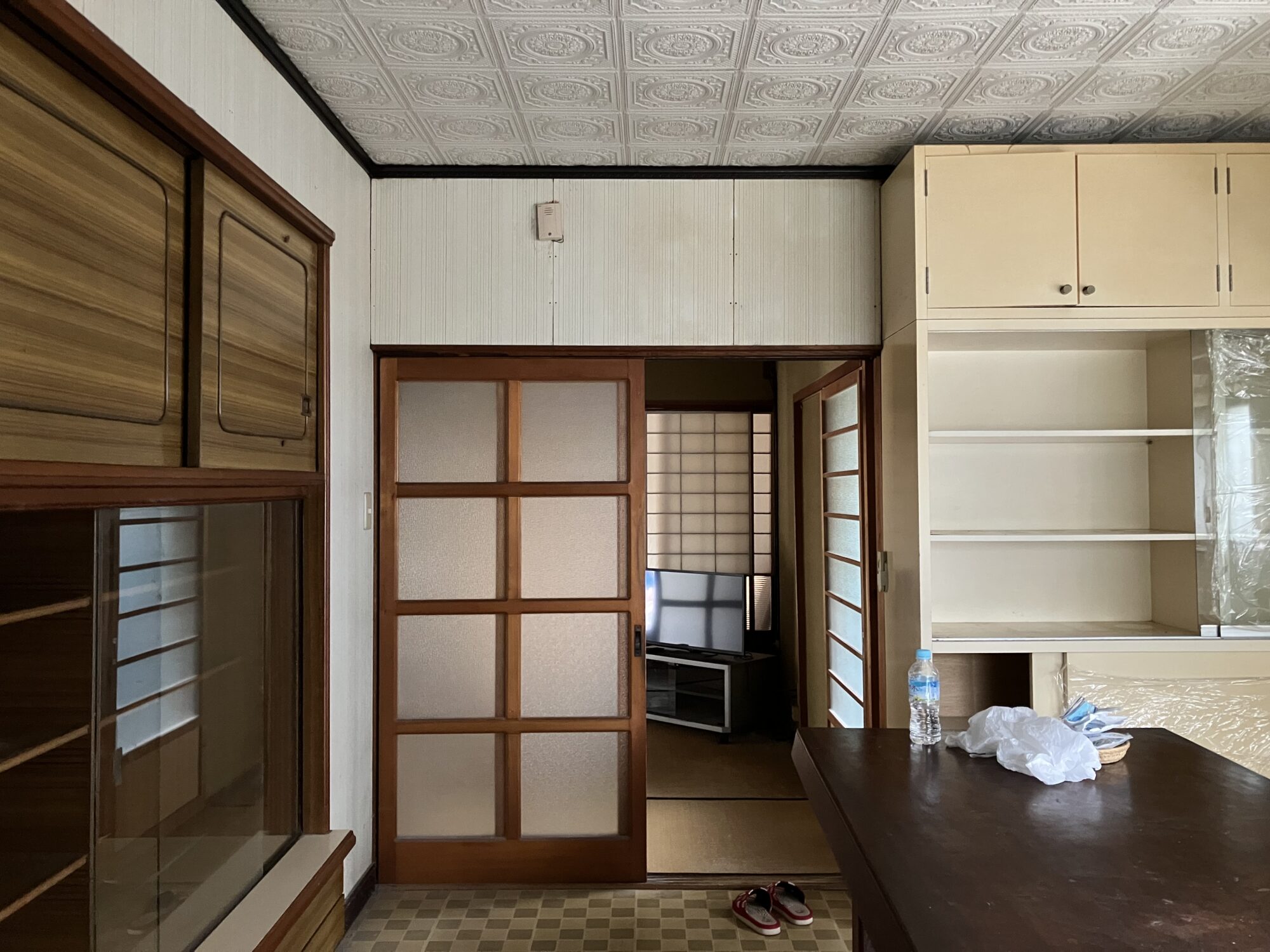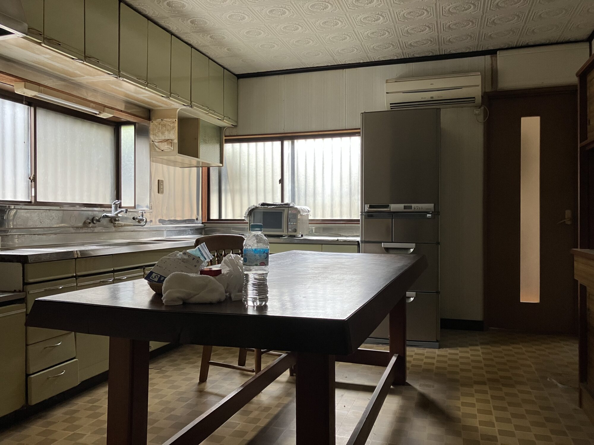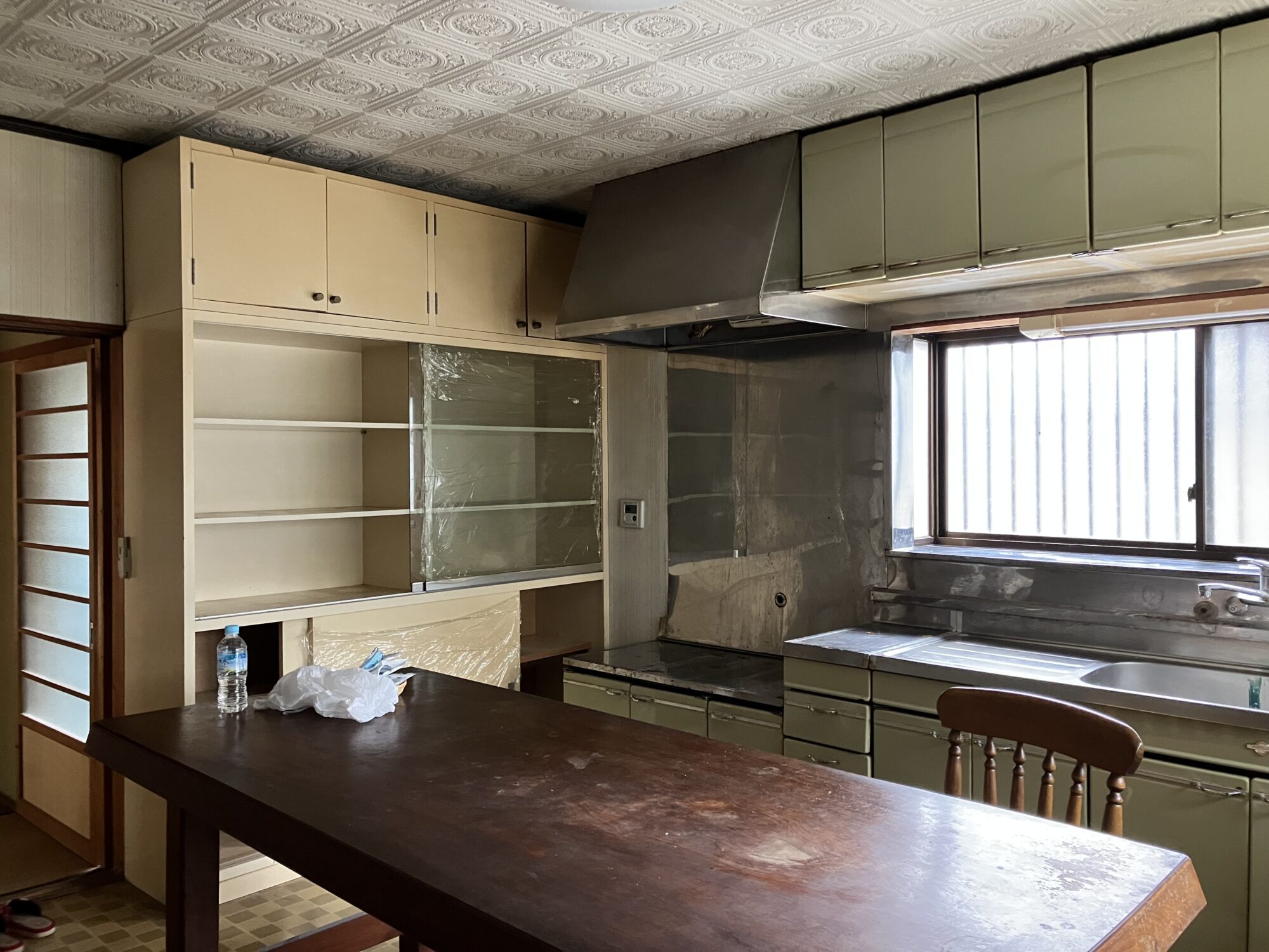 工事内容 | ・壁付けのセパレートキッチンを対面式のホーローシステムキッチンに取替え。 ・ダイニングキッチンとリビングを隔てていた壁を取り払い、開放的で明るい大空間を実現。 ・廊下とを結ぶドア位置を変更し生活しやすい動線にしました。 ・キッチン横にパントリーを新設。 ・キッチン隣の部屋にあった洗面所~浴室の出入口をキッチン内に新設して動線を変更。 ・天井、壁、床をすべてリフォーム。床材には心地良い無垢材を使用。 ・スイッチ、コンセント新設及び移設。 ・防蟻工事。 |