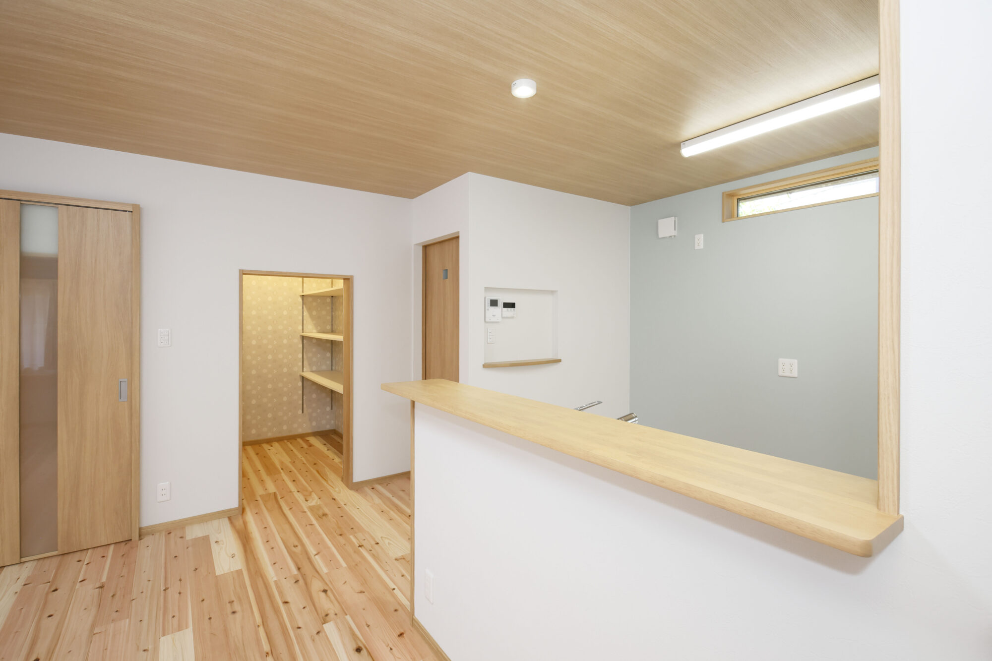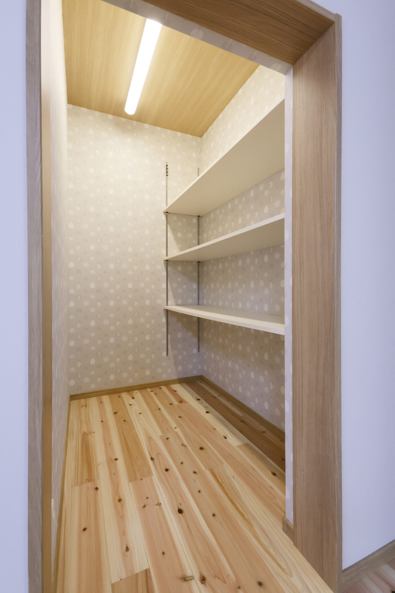 キッチンとリビングを完全に隔てていた壁を取り払い、明るく開放的なLDK大空間を実現。 北向きの壁付けだったキッチンを、壁を取り払ったことにより南向きの対面式に変更。明るい大空間に向かって家族との会話を楽しみながらの調理時間が生まれ、自然と家族みんなの笑顔あふれる空間となりました。 システムキッチンは丈夫でお掃除ラクラクのタカラスタンダード ホーローシステムキッチンをチョイス。 キッチンのすぐ横には常備しておきたい食材やあまり使わない食器などを収納しておける、あこがれのパントリーを設えました。 従来キッチンがあった壁は窓の位置とサイズを変更し、大きなカップボードやキッチン家具などを自由に配置できるような壁にしました。床には裸足でも心地良い無垢の床材を敷き、快適な空間づくりに一役買っています。