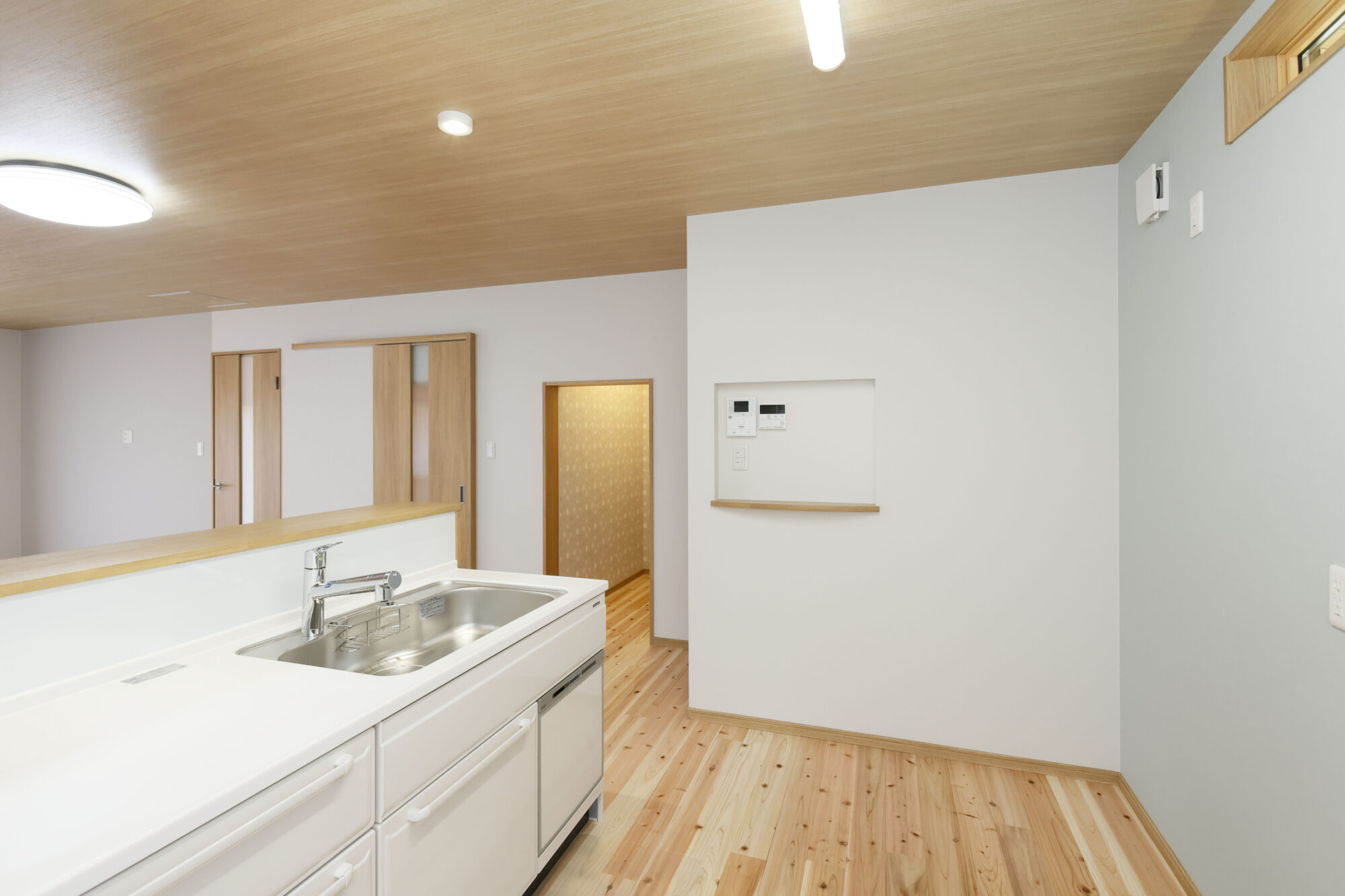 商品仕様 | ・タカラスタンダード ホーロシステムキッチン エーデル 間口255cm。 ・パナソニック ベリティス内装ドア、引戸。 ・パナソニック インテリアカウンター。 ・杉床材。 ・サンゲツ クロス。 他 |