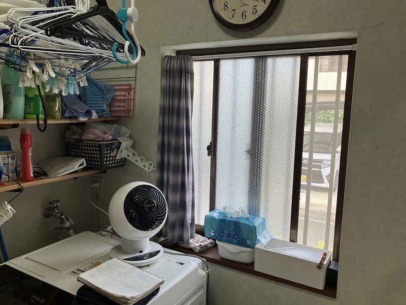 洗面脱衣室も窓が大きく冬場寒いので困っているとの事。